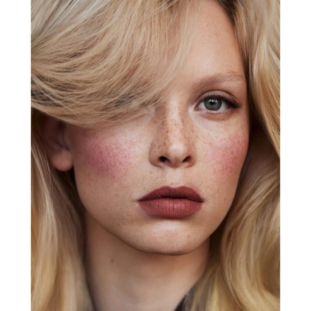 Finish with a deep red or brown lip color for contrast. For freckles, gently dot the pencil on the face and smudge slightly for a realistic look. This look is fresh yet sophisticated, balancing earthy tones with a glamorous lip.