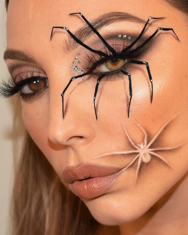 To recreate this, apply a primer on the lids, then layer on the green shadow, adding rhinestones with lash glue for precision. Pair this look with glossy nude lips to keep the focus on the eyes.