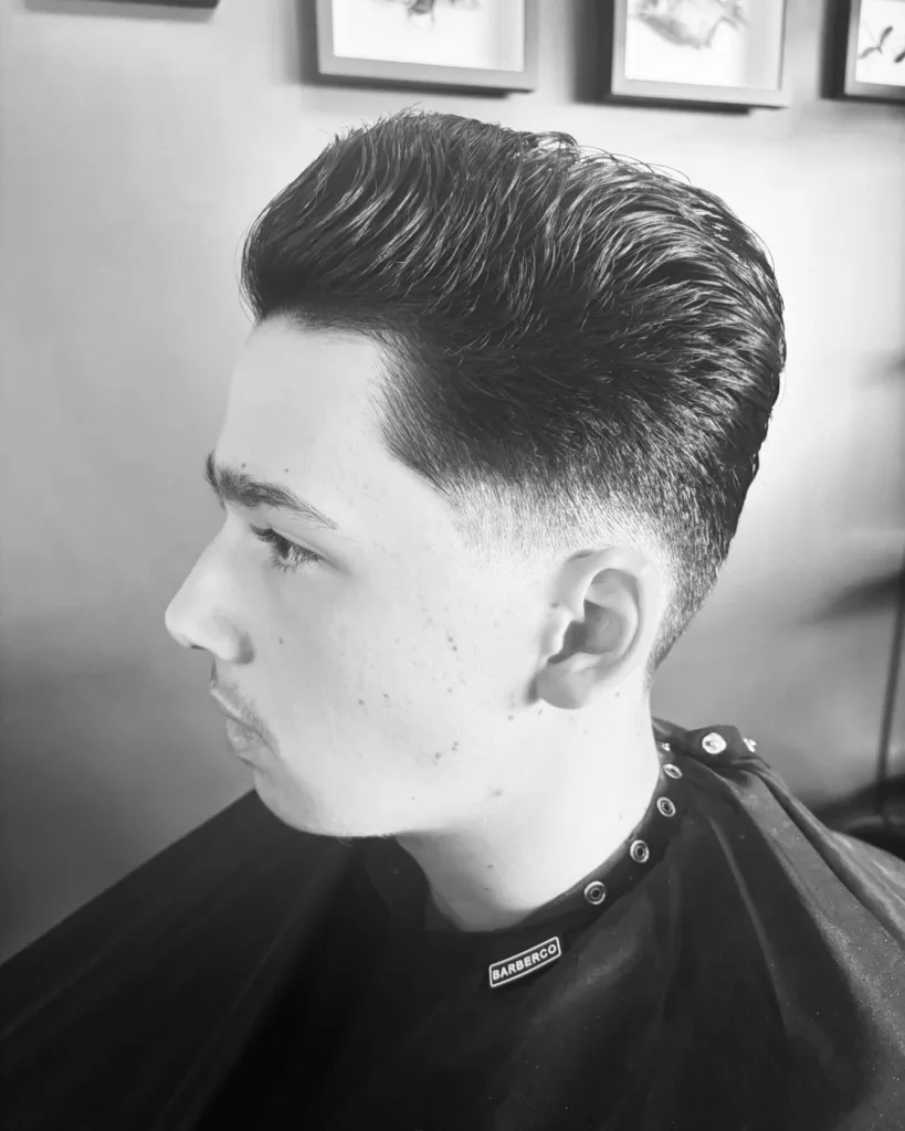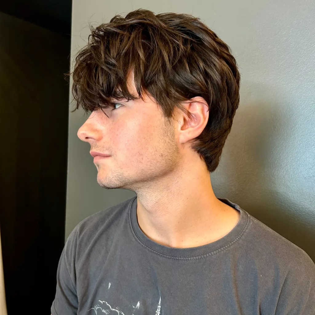 This cut keeps it tight on the sides and messy on top—grunge with a touch of punk. It’s easy to style and fits almost any face shape, making it a versatile choice. Great for those who want a bit of rebellion without the upkeep of long hair. Use a light pomade or styling cream to bring out the layers. A quality pomade gift set would hit the mark here. Cool, laid-back, and just messy enough to make a statement.
