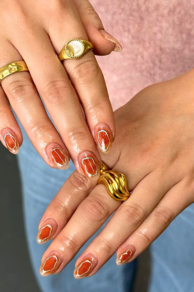 Designing your nails with an amber theme is a fantastic way to showcase your style with a touch of elegance and warmth.