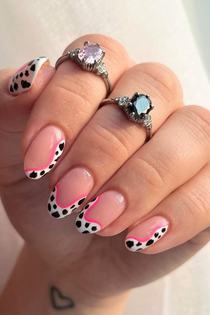 These Dalmatian French tips blend classic French manicure style with a playful twist.