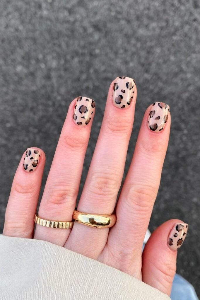 These Classic Leopard nails feature a beige base with black and brown leopard spots, creating a timeless and chic design.