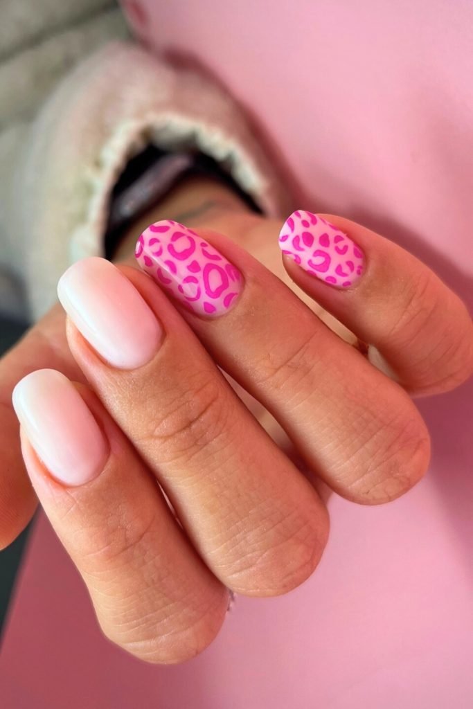 These Pink Leopard Pop nails feature a striking combination of soft, matte pink, and bold leopard prints.