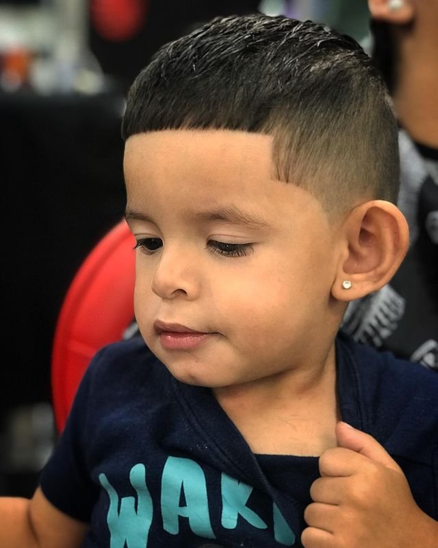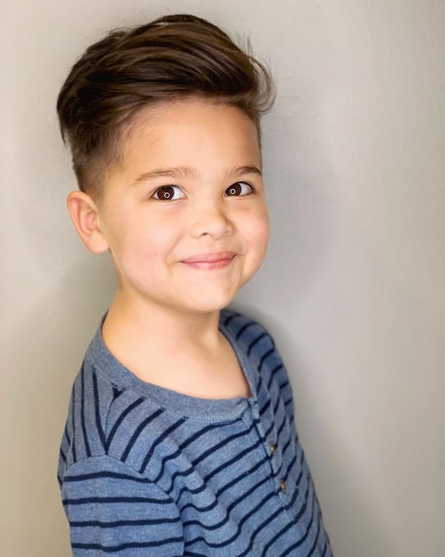 This sleek comb-over with fade is a trendy yet timeless option for toddlers. The sides are faded using clippers, creating a clean and neat look, while the top is longer and neatly combed to the side.