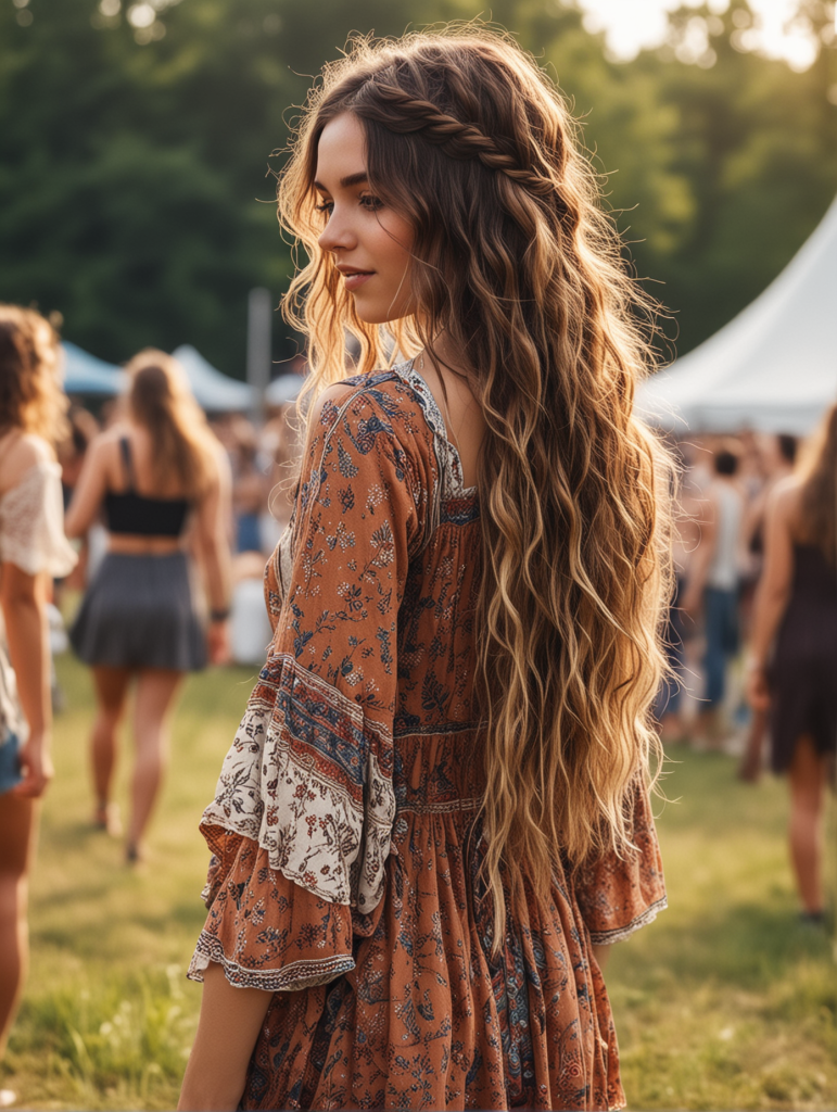 This casual yet chic hairstyle is great for outdoor festivals, beach days, or any laid-back event where style meets comfort.