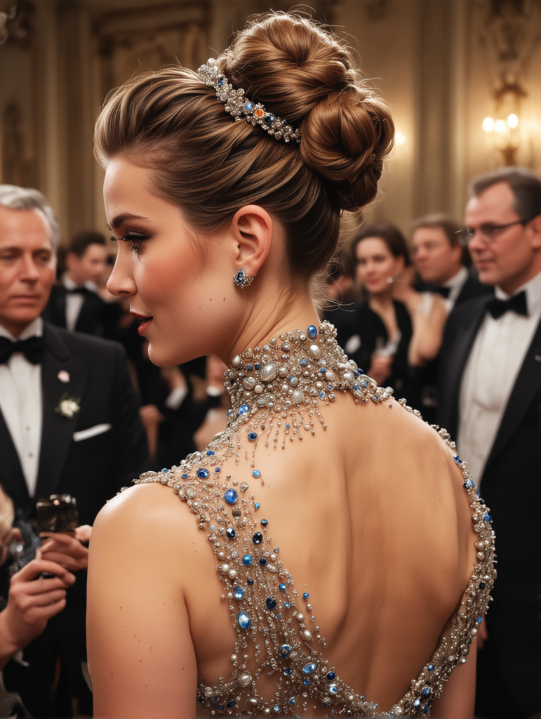 Sweep your hair back into a voluminous, decorative bun for a dramatic effect. This hairstyle is powerful and commanding, perfect for making an entrance at a formal event.