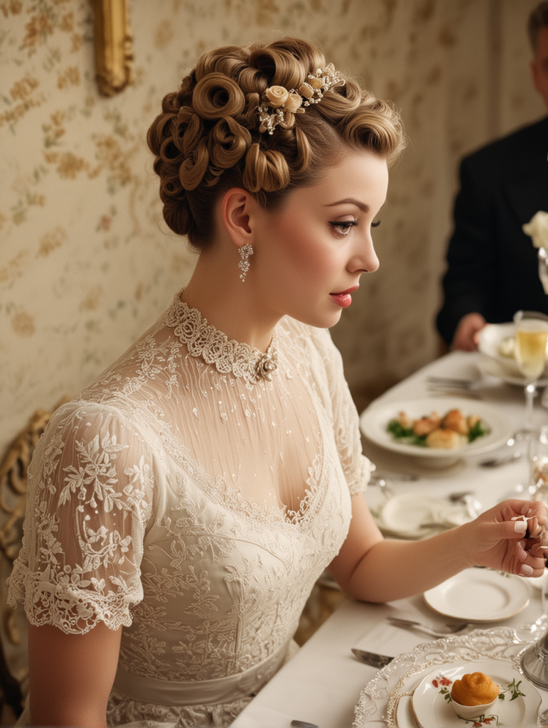 This hairstyle exudes a classic charm and is ideal for formal dinners or theatrical performances.