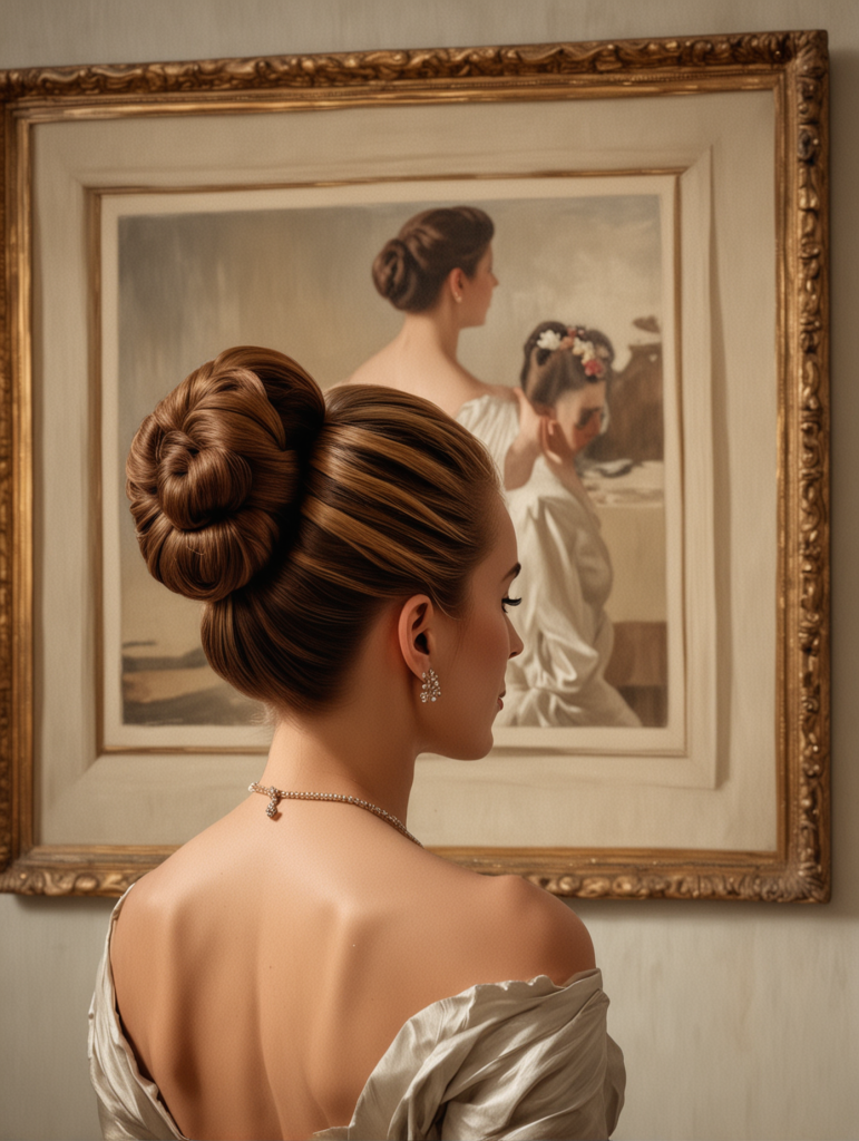 - Form the Updo: Pull your hair back and twist it into a low chignon or bun at the nape of your neck. Don’t worry about getting it perfectly smooth; a bit of texture adds to the charm.