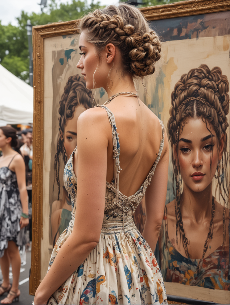 This hairstyle is fun and festive, suitable for picnics, festivals, or any occasion where you want to add a touch of whimsy.
