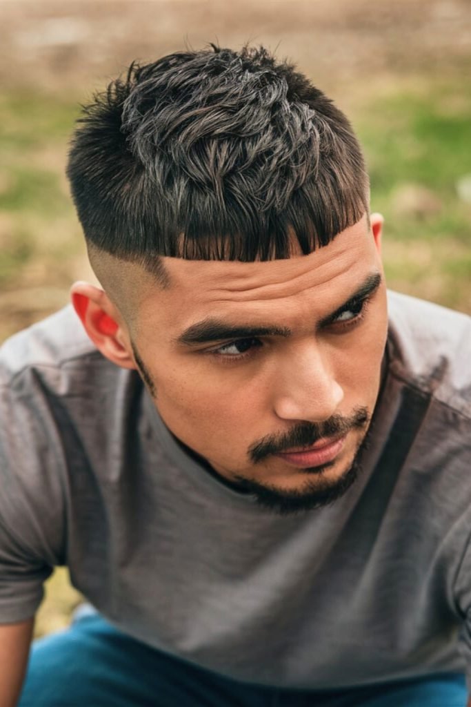 A buzz cut with a slightly longer and textured fringe adds a modern and stylish twist to the classic look.
