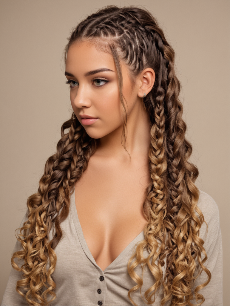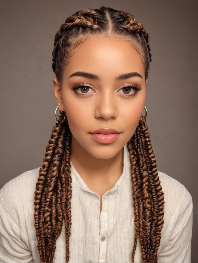 It’s perfect for casual outings or special events, offering a balanced look that showcases both the beauty of braids and the freedom of loose hair.