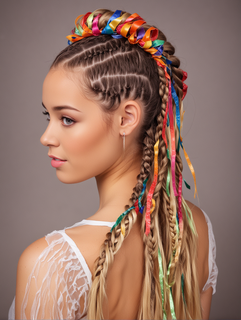 Adding ribbon to your cornrows creates a creative and festive touch. You can interweave colorful ribbons into your braids, adding a fun and playful element to your hairstyle.