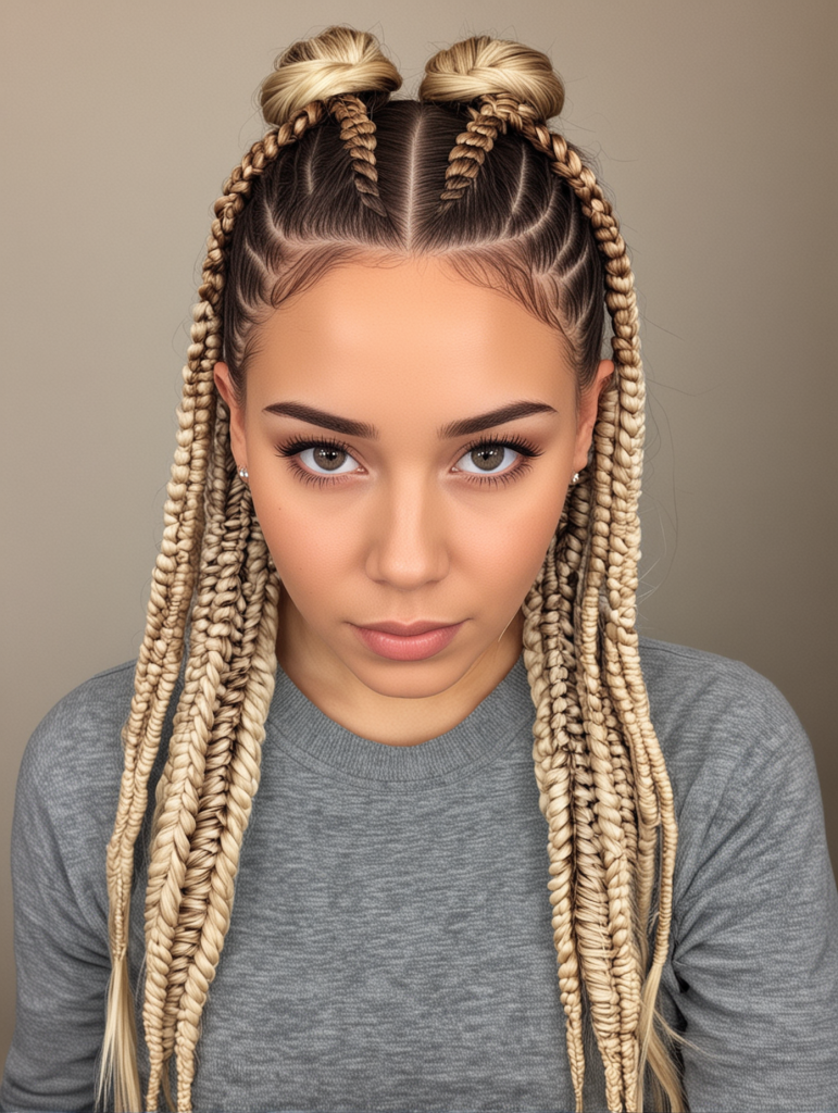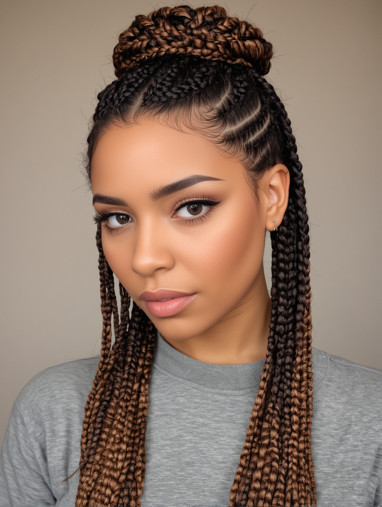 Combining cornrows with box braids offers the best of both worlds. You can style the top half of your hair with cornrows, while the bottom half features long, cascading box braids.