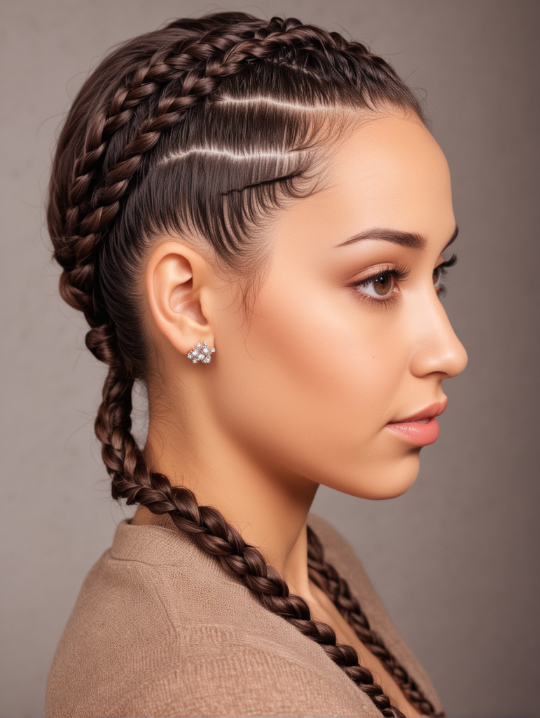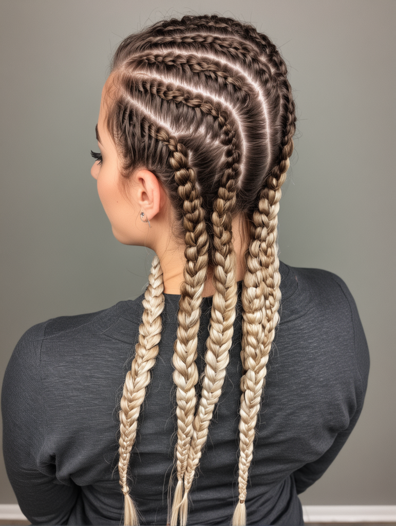 This look is perfect for adding a modern twist to traditional cornrows, offering a chic appearance. It’s an ideal choice for those who love unique and fashionable braiding styles.