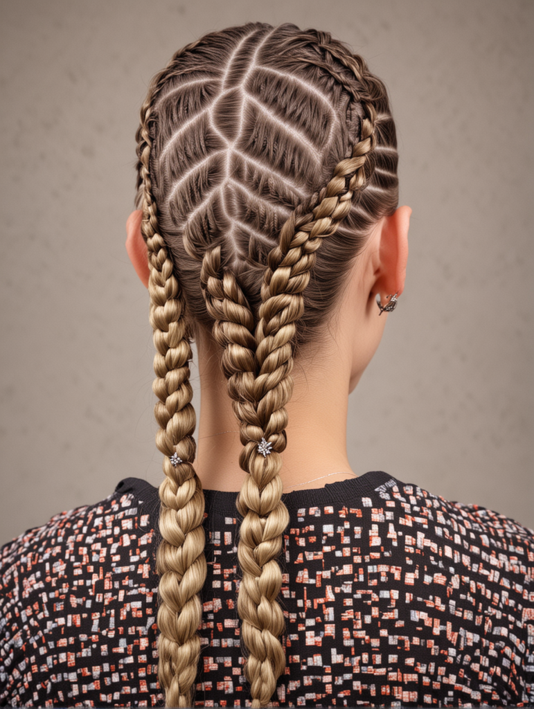 This look is perfect for those who love unique and detailed braiding styles, offering a truly eye-catching appearance.
