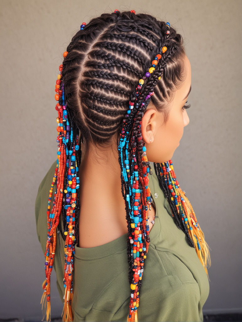 Adding beads to your cornrows is a playful and vibrant way to enhance your hairstyle.