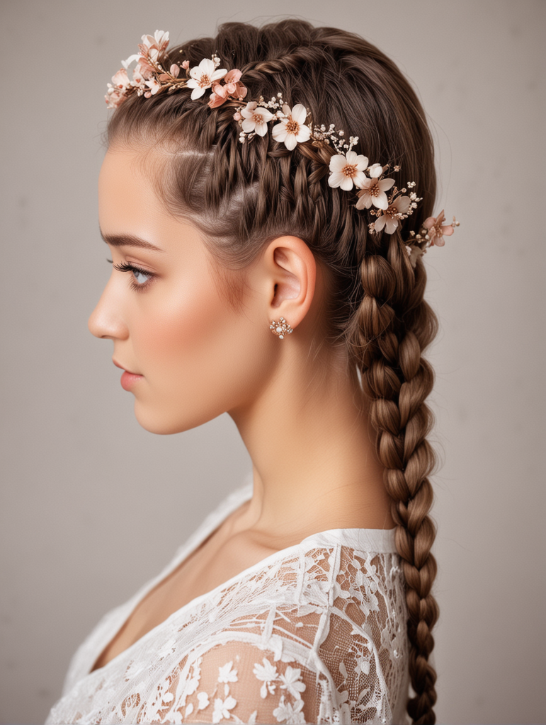 You can adorn your braids with small, delicate flowers, either real or artificial, to add a touch of nature and femininity.