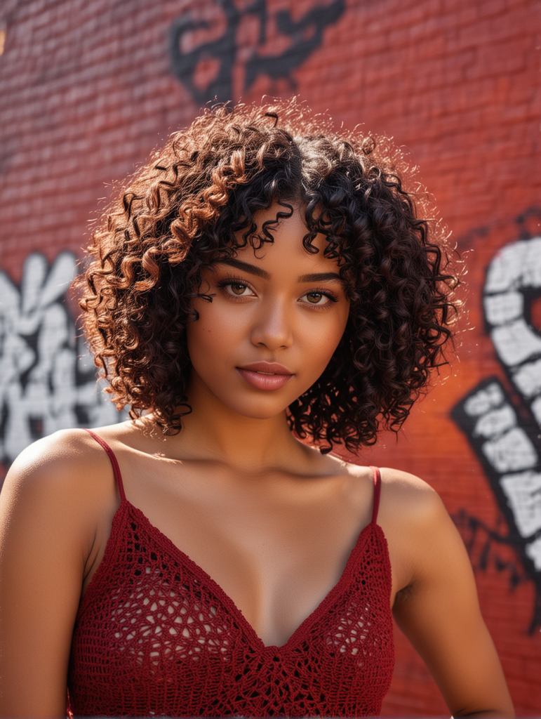 Turn heads with a crochet bob styled with vibrant red curls. This fiery look is perfect for those who aren’t afraid to show off their bold personality.