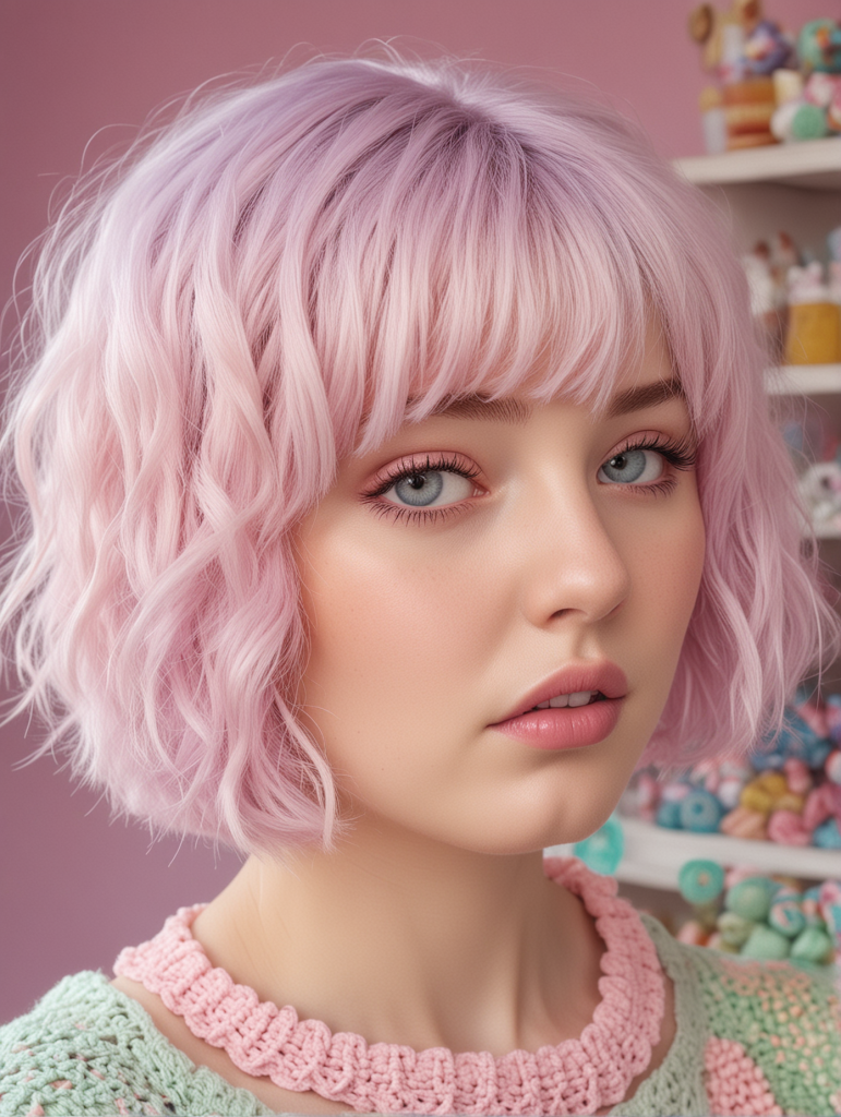 Soft and whimsical, a crochet bob with a blend of pastel colors offers a playful yet sophisticated look.