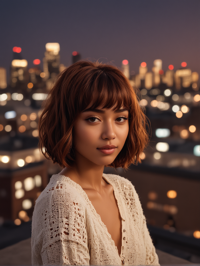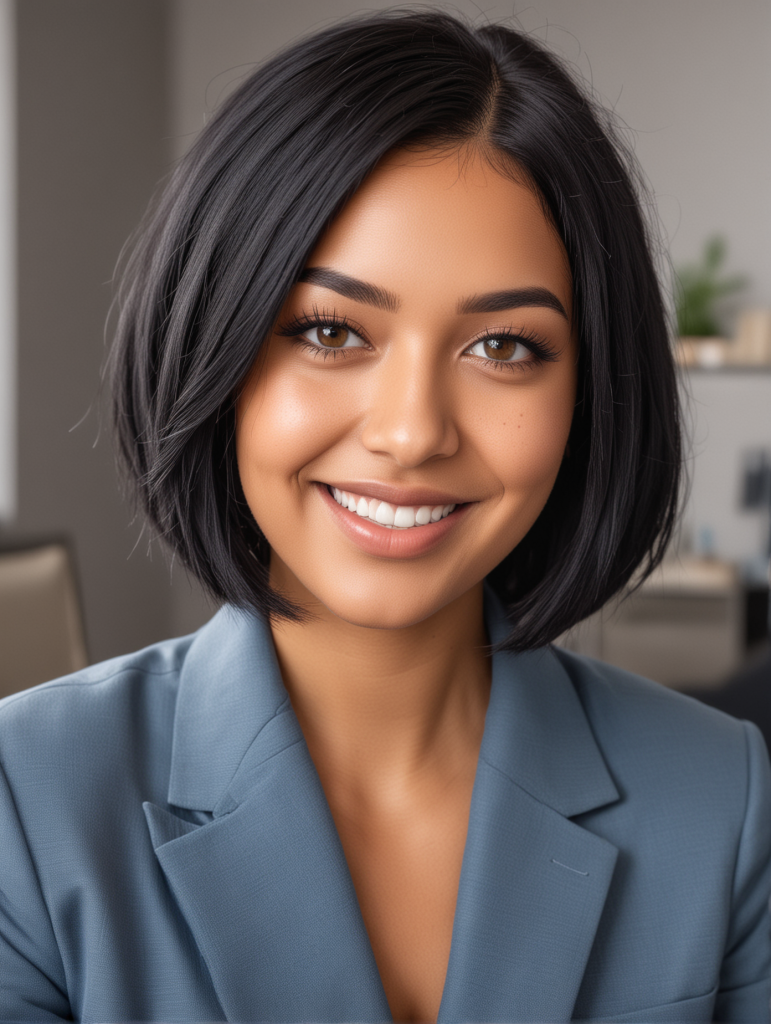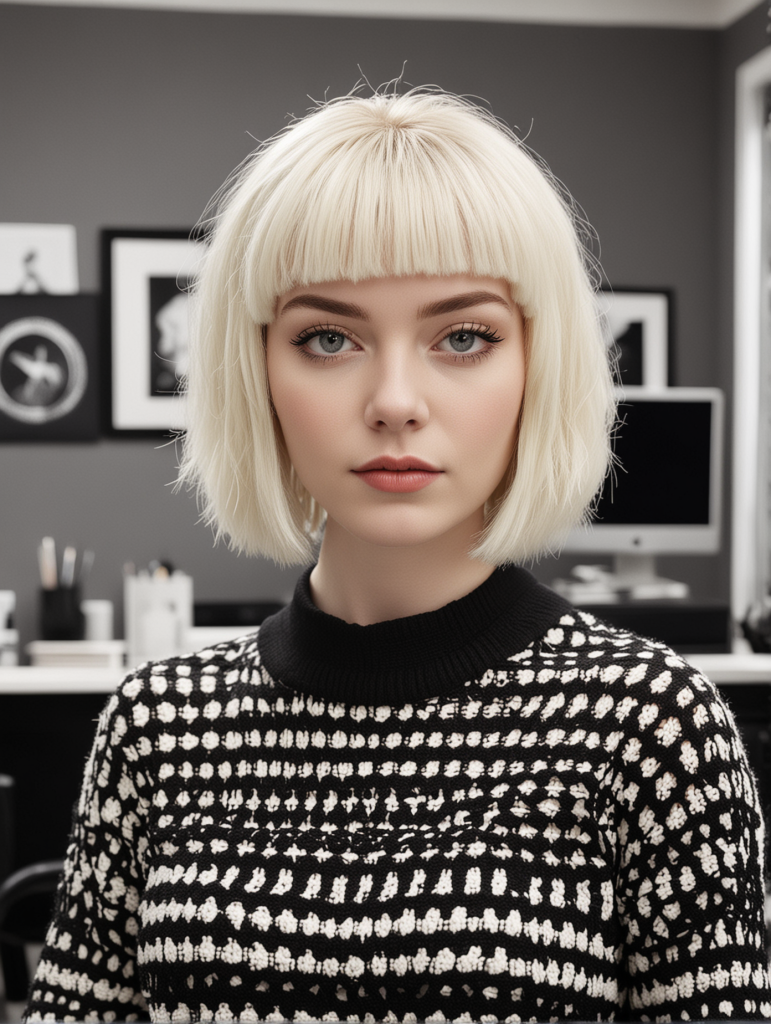 This style adds a playful touch to the traditional bob, with bangs that sweep across your forehead, softening your features and adding an air of mystery.