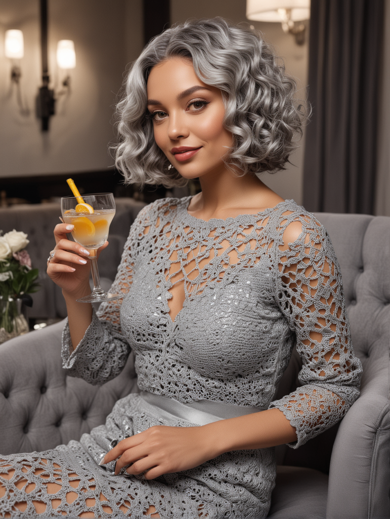 Embrace the trend with a crochet bob styled in silver-grey curls. This sophisticated color has gained popularity for its modern and chic appeal, making it a great choice for those looking to make a fashionable impact.