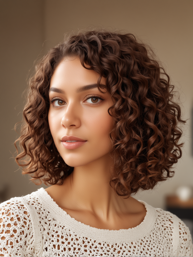 Loose spiral curls in a crochet bob create a soft, romantic vibe that’s perfect for those who prefer a more laid-back and whimsical look.