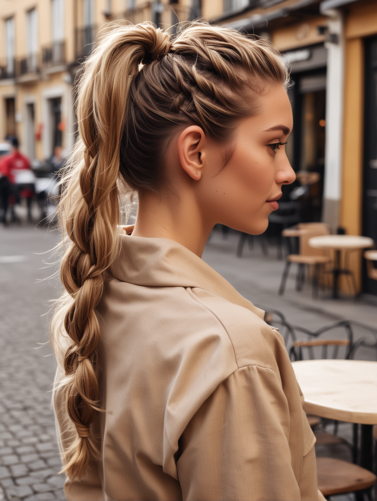 Create a stylish fishtail braid by dividing your hair into two sections and alternately crossing small pieces over to the other side. This intricate-looking braid adds a unique twist to your everyday style.