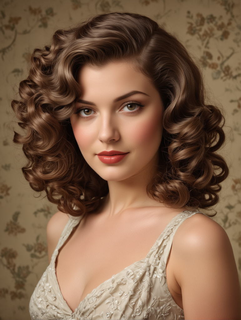 Use a curling iron to create tight curls and then brush them out slightly for vintage curls. This retro-inspired look adds old Hollywood glamour, making it ideal for special occasions.