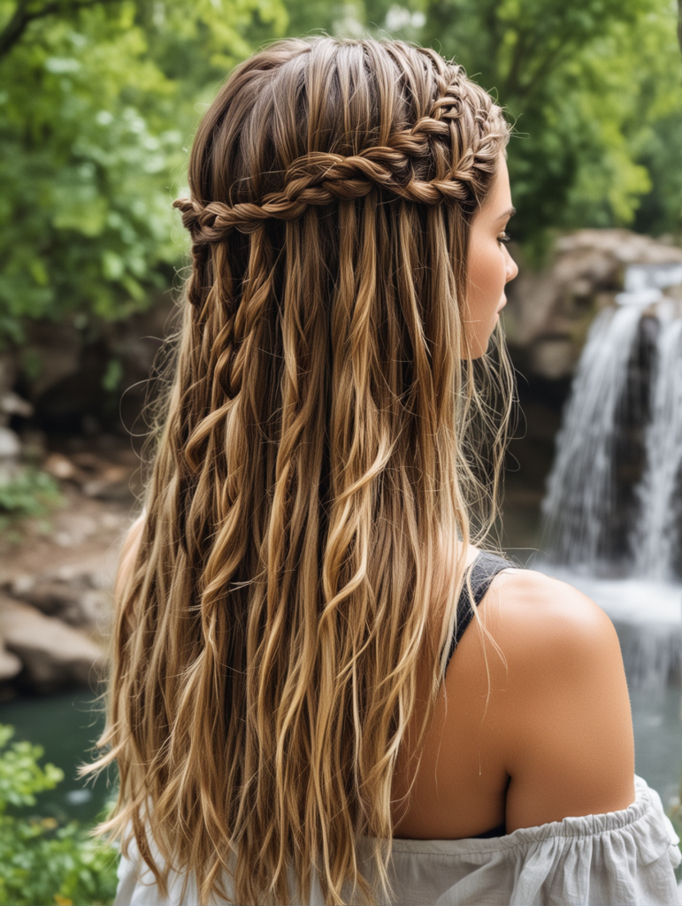 Let sections of your hair fall as you braid to create a cascading effect for a waterfall braid. This beautiful and unique style is ideal for special occasions, offering an elegant touch.