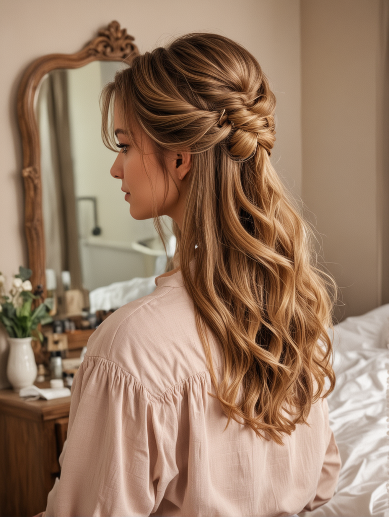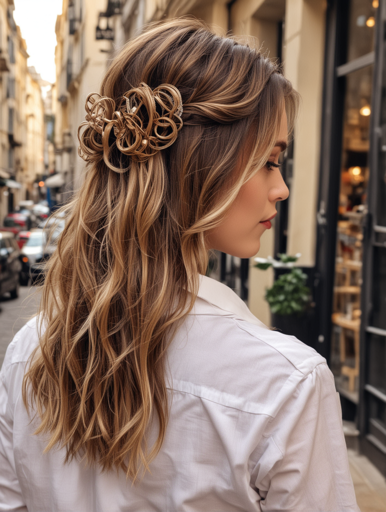 Gather the top half of your hair and secure it with a hair tie or clip, leaving the rest loose. This classic style keeps hair off your face while showcasing your locks. It’s simple yet versatile for various settings.
