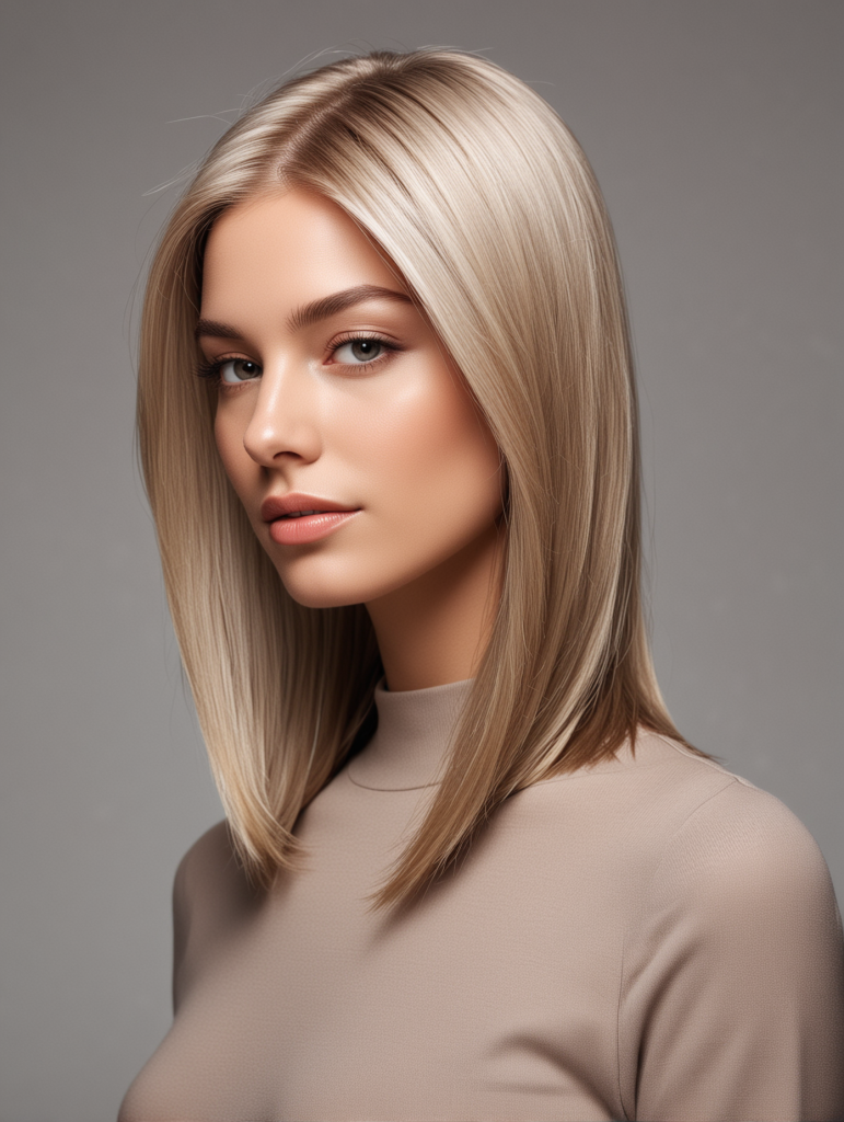 Use a flat iron to achieve straight and sleek hair, adding a shine serum for extra gloss. This polished and professional look is ideal for the office or anytime you need to appear put-together and sophisticated.