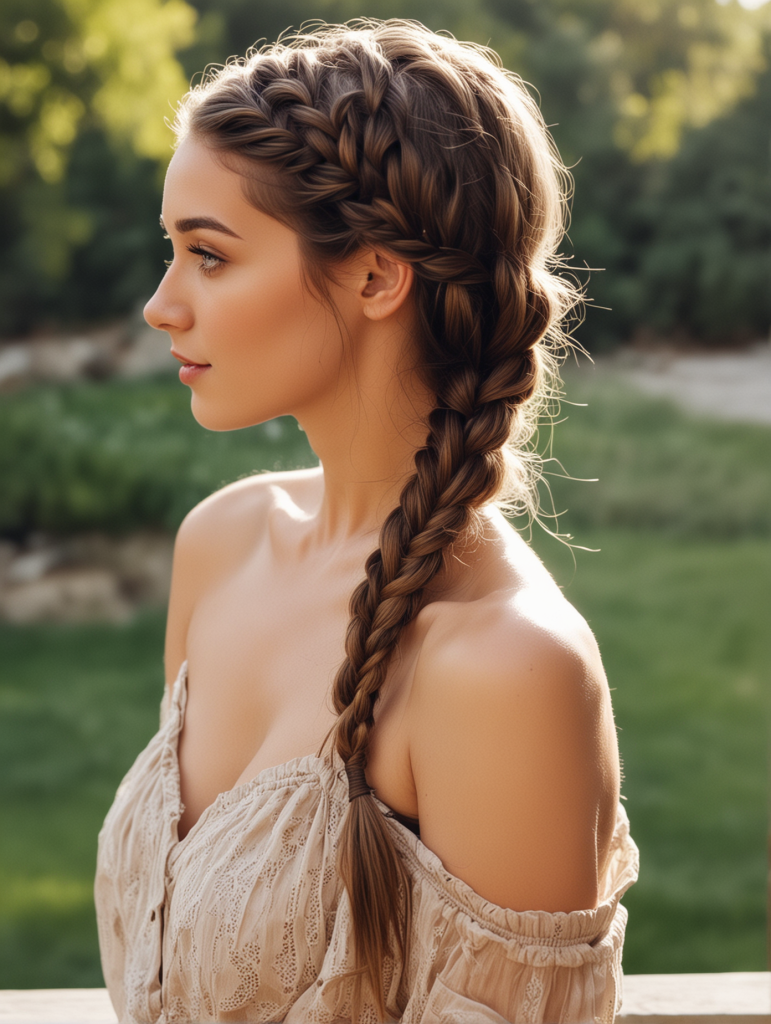 Braid your hair to one side and secure it with a hair tie for an elegant side braid. This quick and easy style adds a refined touch, suitable for both casual outings and formal events.