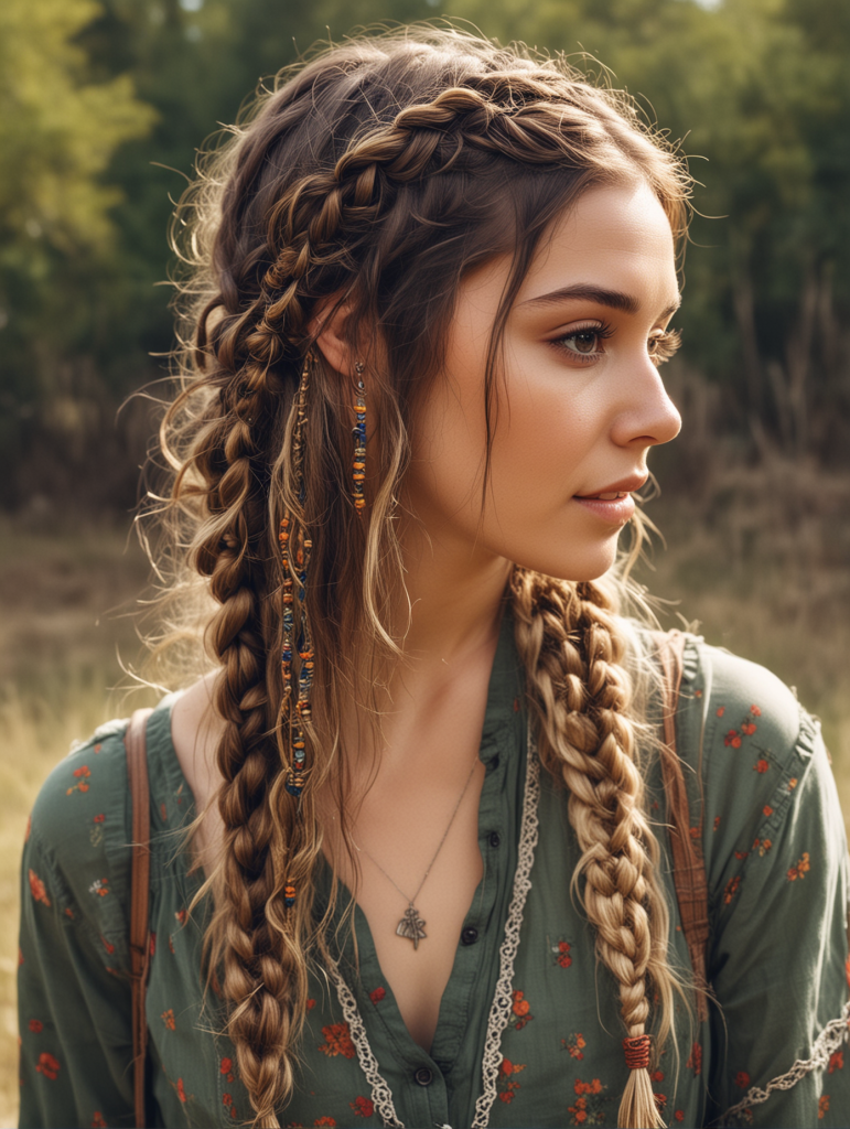 Create small braids throughout your hair for a bohemian touch. This laid-back, festival-ready style adds a whimsical and carefree vibe, perfect for summer or casual outings.