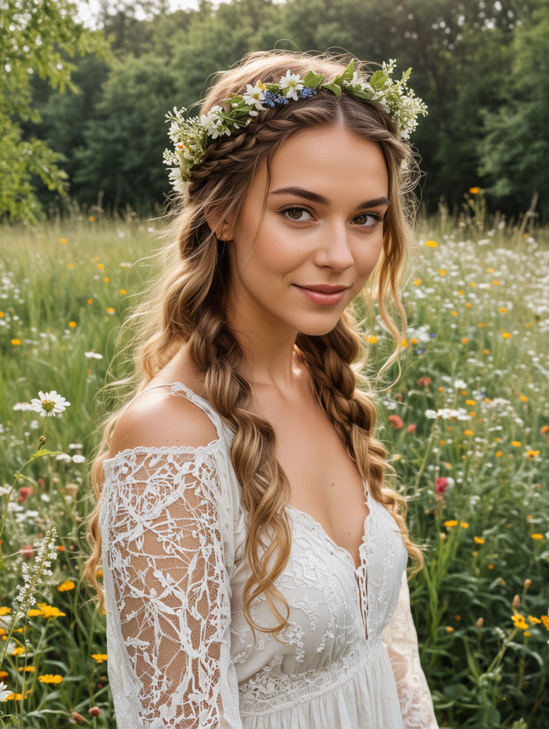 This hairstyle is ideal for outdoor or bohemian-themed weddings. It adds a touch of romance and fairy-tale charm to your look, making you feel like you’ve stepped right out of a storybook.