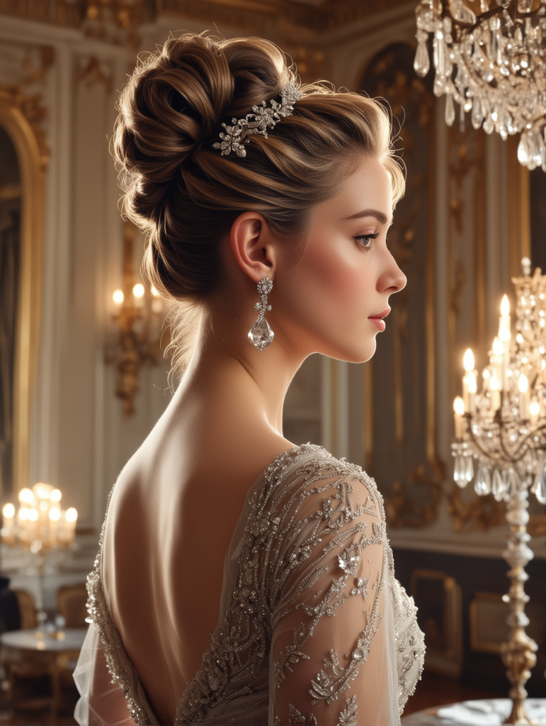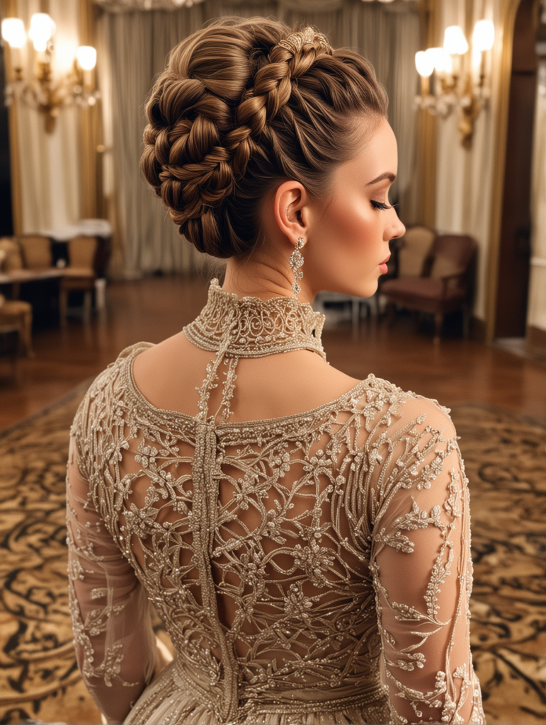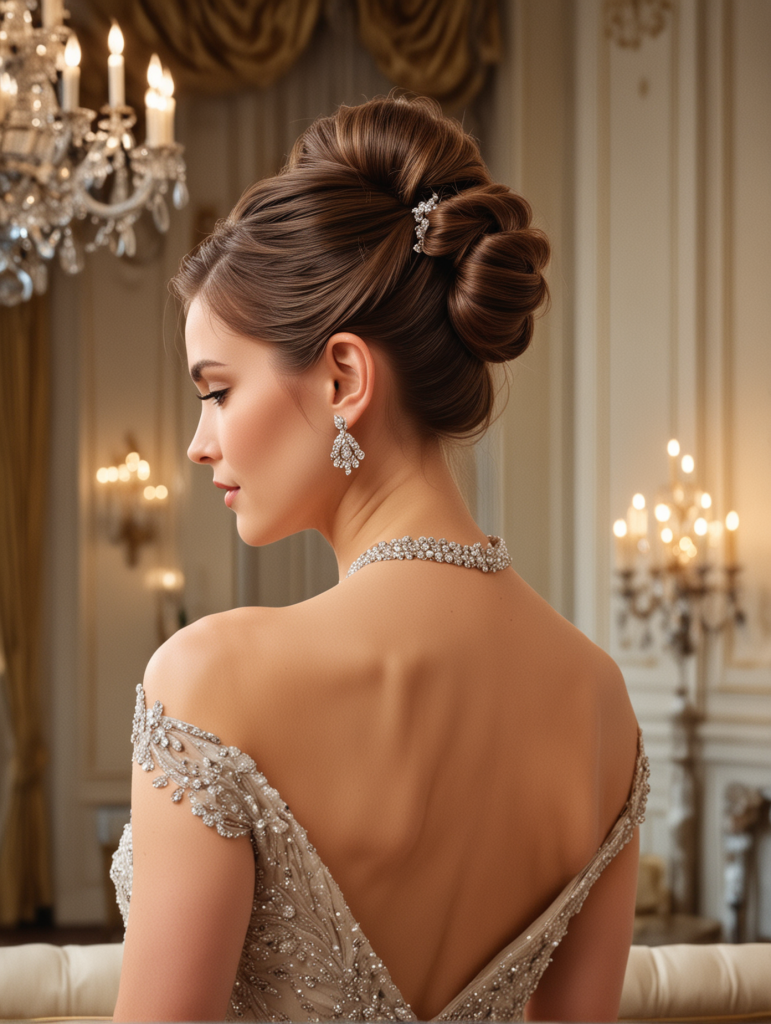 This sophisticated updo is ideal for formal weddings and pairs beautifully with statement jewelry. It’s a classic look that exudes elegance and refinement.