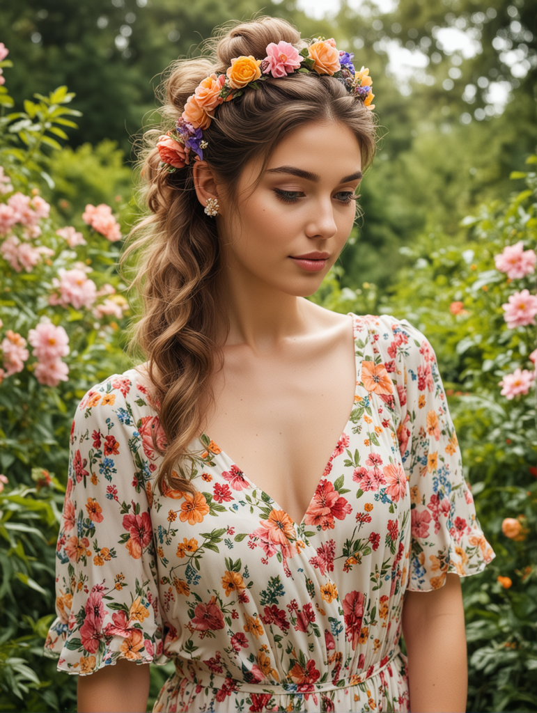 This look is perfect for outdoor or garden weddings and adds a romantic touch to your appearance.