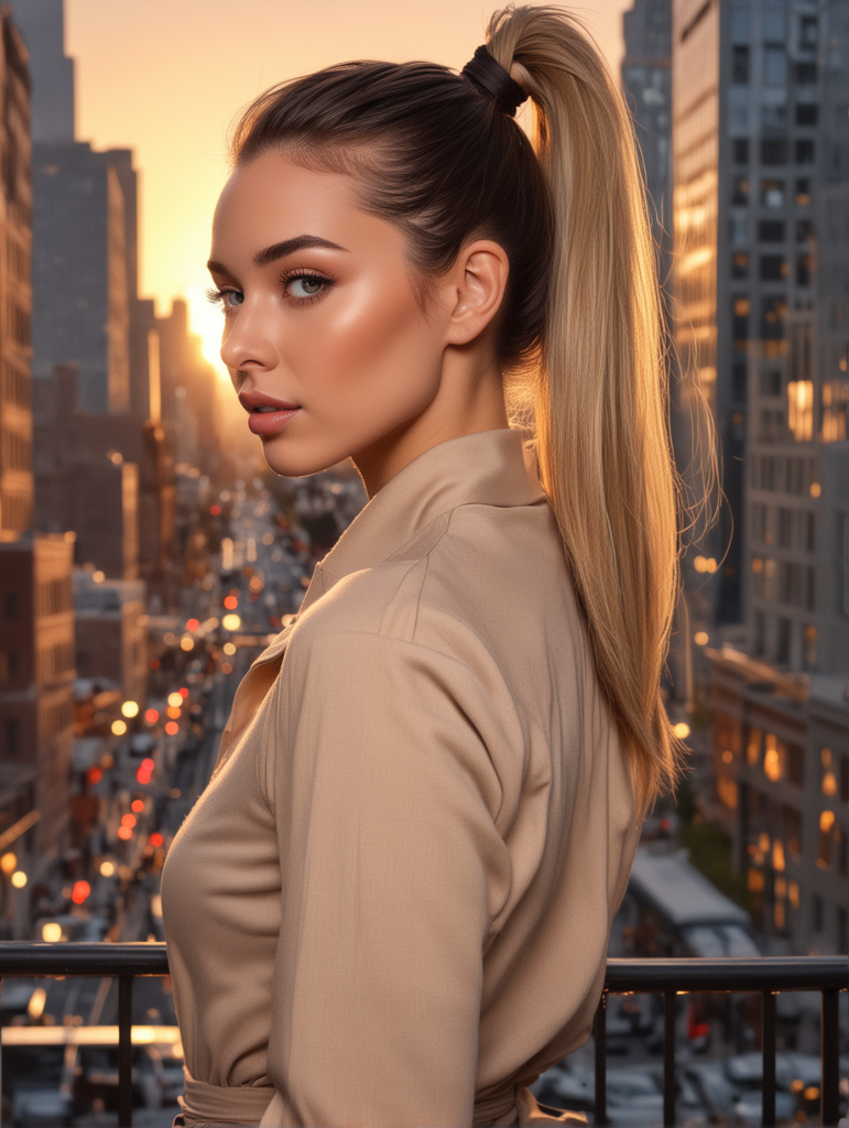 Gather your hair into a high ponytail and secure it with a hair tie. For a polished finish, take a small section of hair from the ponytail and wrap it around the base to hide the hair tie.