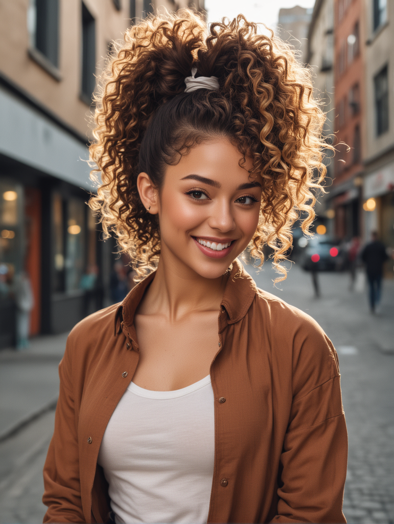 This hairstyle is perfect for showing off your curls and adds a playful touch to your look. It’s easy to do and looks great with any outfit.