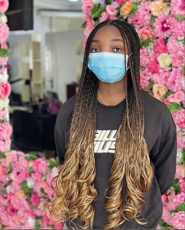 To achieve this style, braid the hair from the scalp to mid-length, leaving the ends unbraided. Use a curling iron or flexi rods to create soft, defined curls at the ends. This look is perfect for those who want to add elegance and texture to their braids with a touch of blonde.
