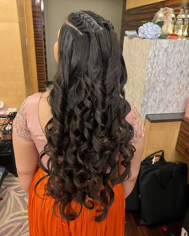 To recreate this look, section off the top part of the hair, twist it back, and secure it with pins. Then, use a curling wand to create loose curls in the remaining hair. This romantic hairstyle is perfect for events where you want to keep things elegant yet relaxed.