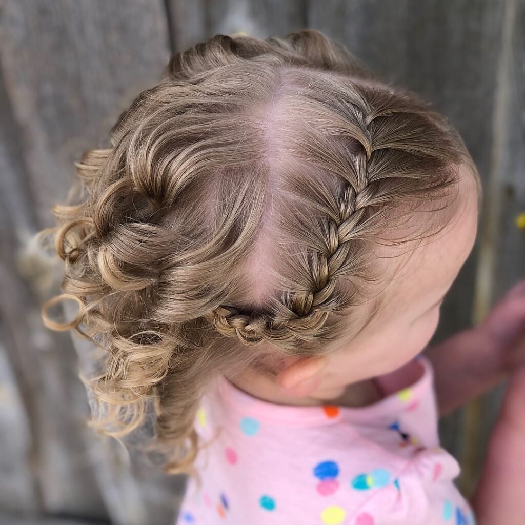 This adorable style features double French braids that lead into playful, curly ends, making it perfect for kids. The braids add neatness and control to the top, while the curls provide a soft, bouncy look at the bottom.