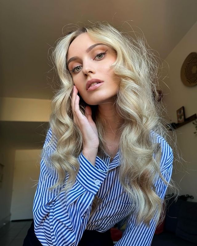 Finish by gently brushing out the curls to give them a more relaxed, voluminous look. This style is perfect for a casual, yet polished look and works well for both day and evening occasions. The blonde color adds a bright, luminous touch, making it ideal for those who want a sophisticated yet effortless vibe.