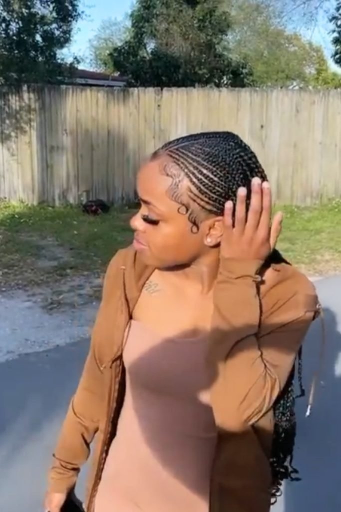 Featuring neat, straight-back braids that highlight the natural contours of the scalp, this hairstyle combines simplicity with elegance.