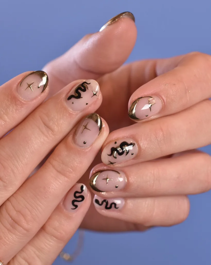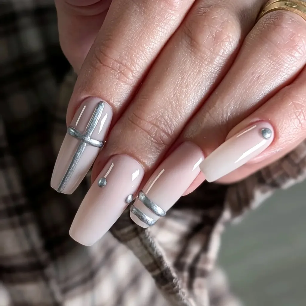 Not every graduation nail has to be loud. If you’re a fan of clean lines and neutral palettes, opt for minimalist nails with tiny geometric shapes, dots, or negative space. This trend proves that less really is more and lets your outfit or accessories do the talking. Look for nail striping tape and minimalist decal sets to pull off this look on your own. These nails are timeless and perfect for grads who lean more toward effortless style than over-the-top trends.