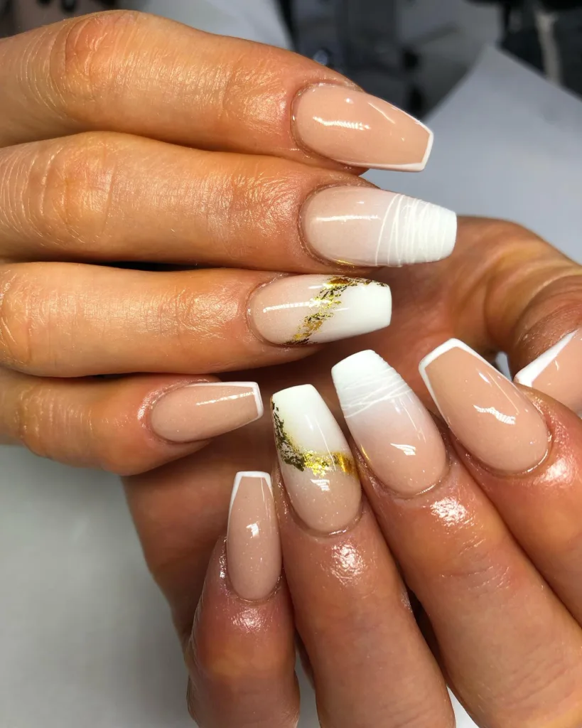 If you’re going for sophistication, nude nails with hints of gold foil are a winning combo. The neutral base ensures your nails won’t clash with your outfit, while the gold adds a hint of glamour perfect for the occasion. Gold foil nail art is also easy to apply yourself using gold leaf nail flakes found on Amazon, making it both budget-friendly and beautiful. This look balances subtlety with sparkle, giving you a refined appearance that still captures attention. It’s ideal for graduates who want their style to whisper elegance, not shout it.