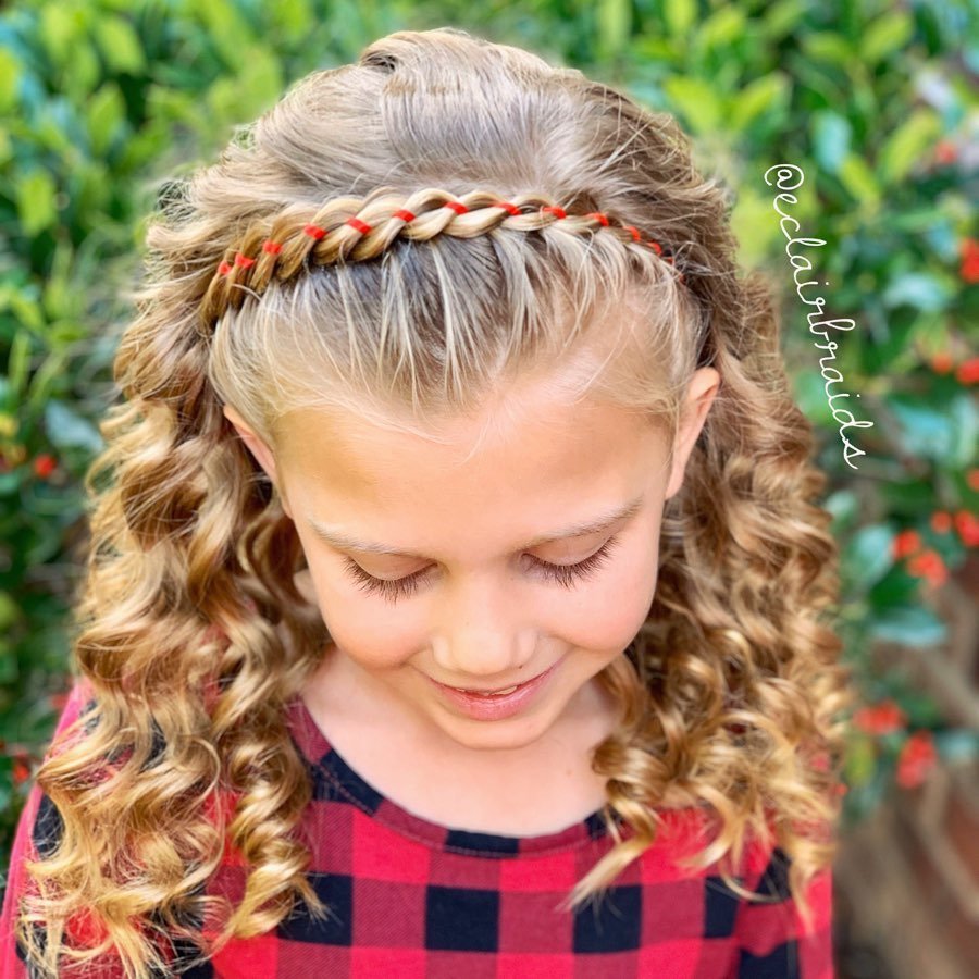 This look combines a twisted braid across the front, acting as a headband for soft curls cascading down. The hairstyle is ideal for both casual and special events, giving a whimsical vibe.