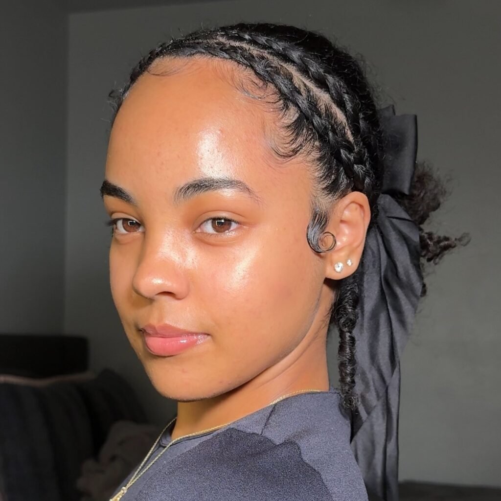 A braided low bun paired with a ribbon or scarf headband creates a polished, elegant look. This style involves sectioning the hair into braids and tying it into a low bun at the nape. Wrap a ribbon headband around the front for added flair.