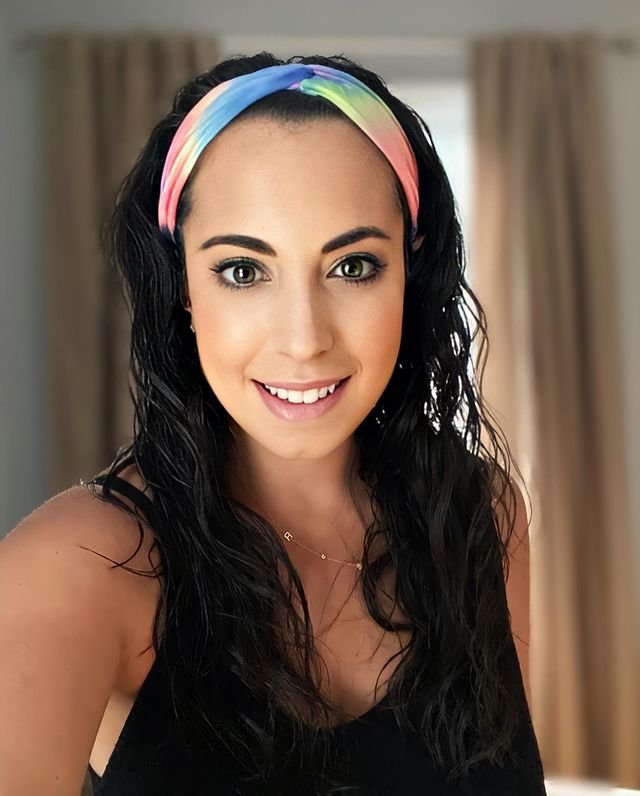 This look features a stretchy, bright headband with wet-look curls. It’s ideal for adding a pop of color to any look while holding curls back, making it perfect for active days.