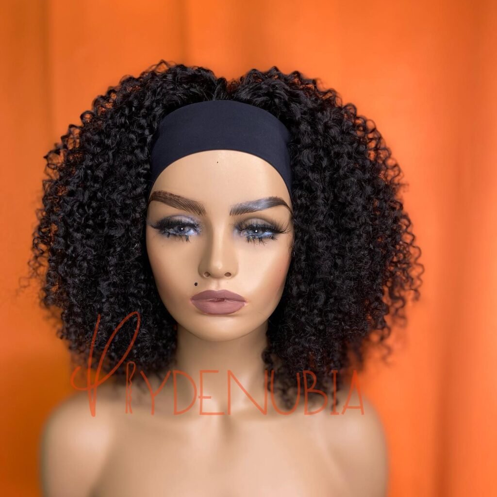 This look features voluminous, natural curls held back with a plain black elastic headband, providing an effortless, classic style. The headband keeps the curls secure without overpowering the look, allowing the curls to take center stage.