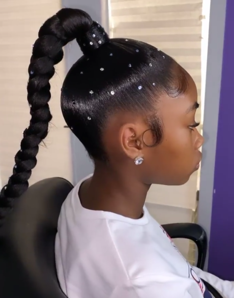 The sleek and braided high ponytail combines smooth hair with a side braid, blending elegance with a modern twist. It’s perfect for those who appreciate a clean and detailed look.